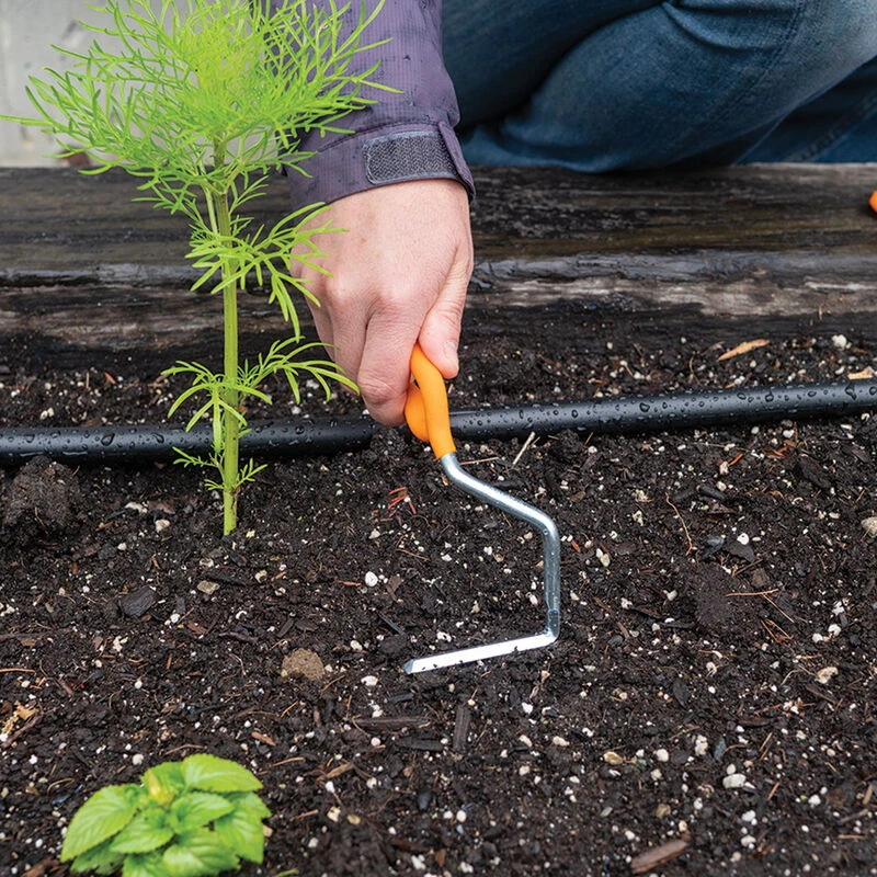The Nifty Series of weeding tools makes manual weeding more ergonomic and precise. The shape and texture of the handle allow a good grip of the tool to combine working precision and working speed. Small, light, and easy to use, the series has several blades designed for different uses. The blades, of steel construction, are specifically designed to avoid damaging the root system of the crop during weeding. Perfectly adapted and developed for professional or home garden use, the tool requires less effort—this makes it less tiring for the wrist and improves productivity. Made in France by Terrateck.