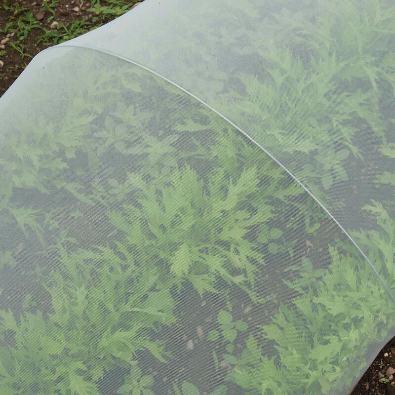 ProtekNet netting keeps insects as small as flea beetles and thrips off tender crops while providing maximum ventilation to prevent heat stress on hot summer days. Fine synthetic knitted mesh is UV resistant and lasts 1–3 seasons. Easy to see through, so crops can be inspected without removal. For best results, use over Quick Hoops or Wire Support Hoops, bury the edges, and ensure foliage is not touching the net, so insects can’t lay eggs through it. 0.0138″ x 0.0138″ (0.35 mm x 0.35 mm) mesh. 89% light transmission; 62% porosity; Weight: 0.74 Oz. per sq.yd. NOTE: Cut netting longer than needed to accommodate shrinkage.