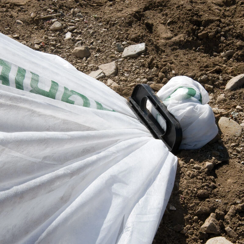 Convenient, lightweight anchors make it easy to remove row covers and access crops. 8″ (20 cm) long, barbed prong holds firmly in the ground, even in areas of strong wind, and small points pierce through fabrics to keep them taught. Place pegs at the base of hoop supports for best results: The long prong should be just outside the rolled row cover edge, with one point pinning the fabric against the soil. 6″ (15 cm) wide handle. 25 Count.