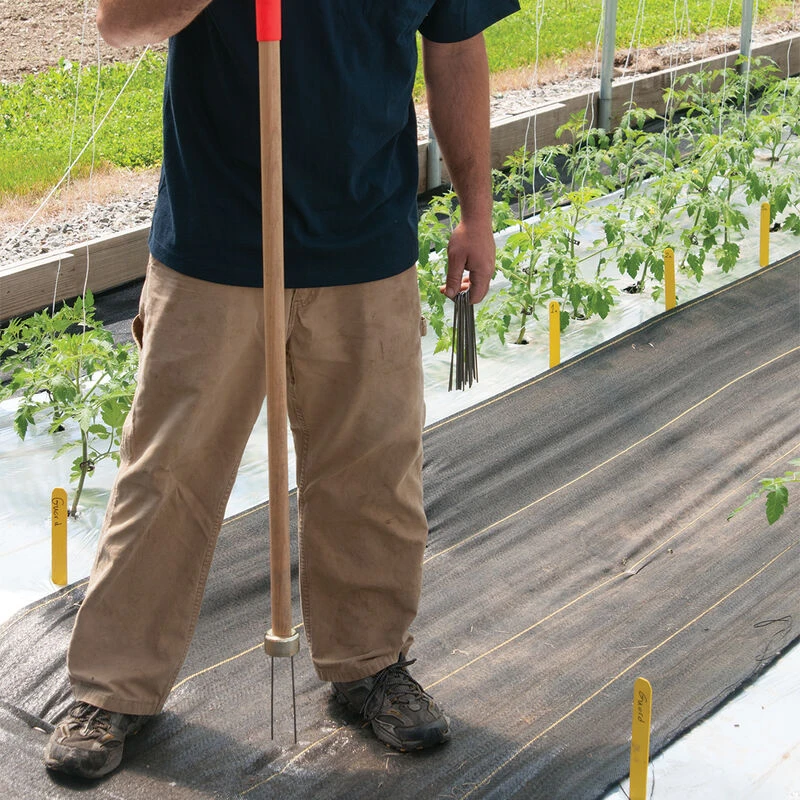 42″ handle with magnetic head will hold a single staple while you drive it in from a standing position. No more bending down, hammering, bent staples, or stepping on them to drive them in. For use with our fabric staples or 1″ steel staples of any length.